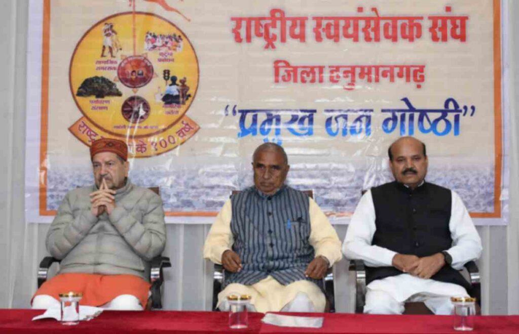 राष्ट्रीय स्वयंसेवक संघ (आरएसएस) के राष्ट्रीय कार्यकारिणी सदस्य और वरिष्ठ प्रचारक इंद्रेश कुमार संक्षिप्त प्रवास पर 6 दिसंबर को हनुमानगढ़ पहुंचे। उन्होंने जिला मुख्यालय स्थित अग्रसेन भवन में प्रमुख जन गोष्ठी को संबोधित किया। इसमें जिले भर के प्रमुख नागरिकों सहित सरकारी अधिकारियों ने भी भाग लिया। चंद्रेश कुमार ने कहा कि जागरूक समाज ही सशक्त राष्ट्र की नींव तैयार करता है। राष्ट्र निर्माण केवल सरकारों का काम नहीं, बल्कि हर नागरिक की जिम्मेदारी है। उन्होंने लोगों को यह समझाने की कोशिश की कि भारत को भूगोल की सीमाओं तक सीमित समझना उसकी गरिमा को छोटा करना है। भारत एक जीवन दर्शन है, एक ऐसी सोच जो समाज, संस्कृति और कर्तव्यबोध को जोड़ती है।